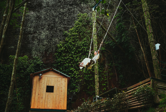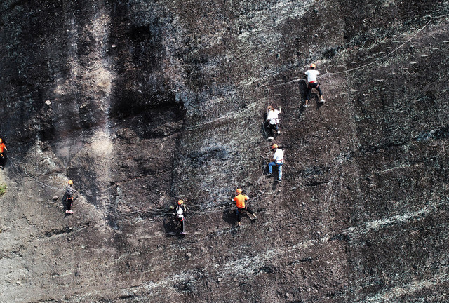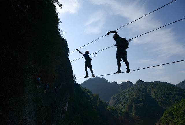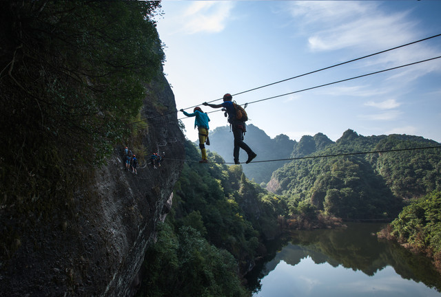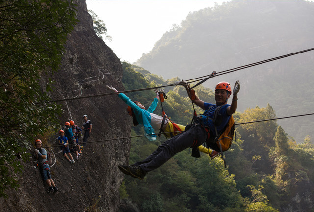 东浒寨飞拉达是国内第三个正式投入运营的项目,也是赣、湘、鄂三省唯一的特色项目。户外教练的陪同指导,让没有攀岩技巧的游客,也能体验到飞檐走壁的刺激。