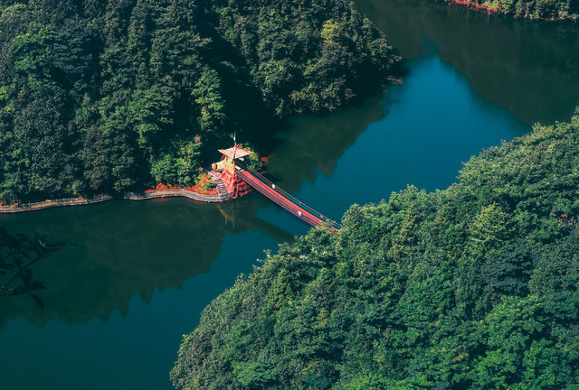 赤壁丹霞上色彩斑斓,洞穴累累;高峡幽谷,清净深邃;地貌造型丰富且变幻万千,加上蜿蜒曲折的林中幽泉,山水结合,美不胜收。