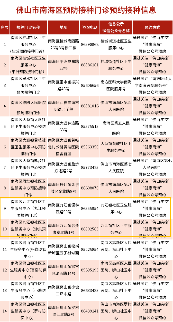 结合南海区实际情况,为有效预防疫苗针对疾病,满足群众疫苗接种需求,根据南海区新冠肺炎疫情防控指挥部办公室通知,3月下旬南海区所有预防接种门诊提供线上预约儿童预防接种服务产科接种点和狂犬病暴露处置门诊继续如常开诊(新冠疫情期间不停诊)。